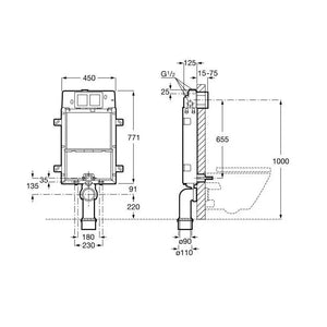 - - Built-in frame: BASIC WC , measuring 47.6 cm long , 9 cm wide and 80 cm high , adaptable to top or rear hydraulic connections.