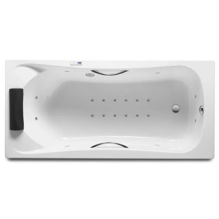 Rectangular Bathtub with Two Handles and Headrest, 190 cm, Made of White Acrylic, Becool Roca