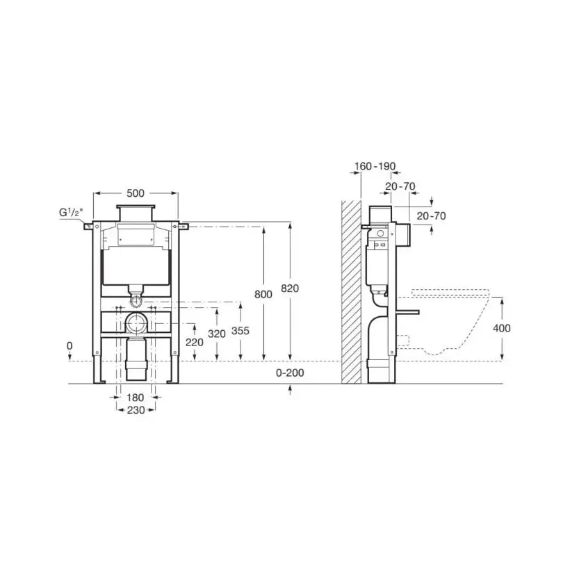 • - Cistern dimensions: 50 cm wide, 82 cm high, 16 cm deep, compatible with installations under windows thanks to its reduced height.