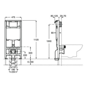 - - Frame: Built-in cistern with DUPLO WC frame, made of metal profile, resistance up to 400 kg. With dimensions of 47.5 cm long x 10.7 cm wide x 112 cm high .