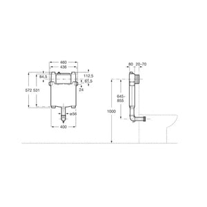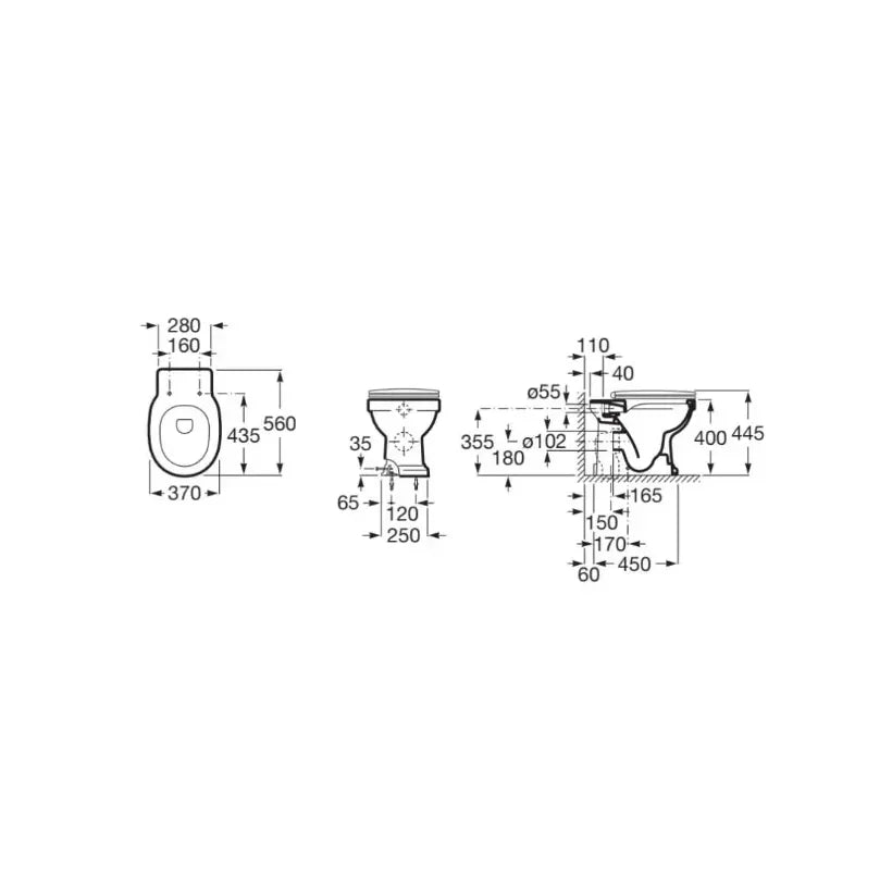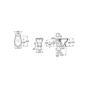 - - Dimensions du WC : 37 cm de large, 40 cm de haut et 56 cm de profondeur, offrant une taille compacte.