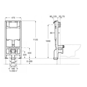 • - Cistern dimensions: 47.5 cm wide, 112 cm high, and 10.7 cm deep. Built-in dual-flush cistern system for greater water savings.