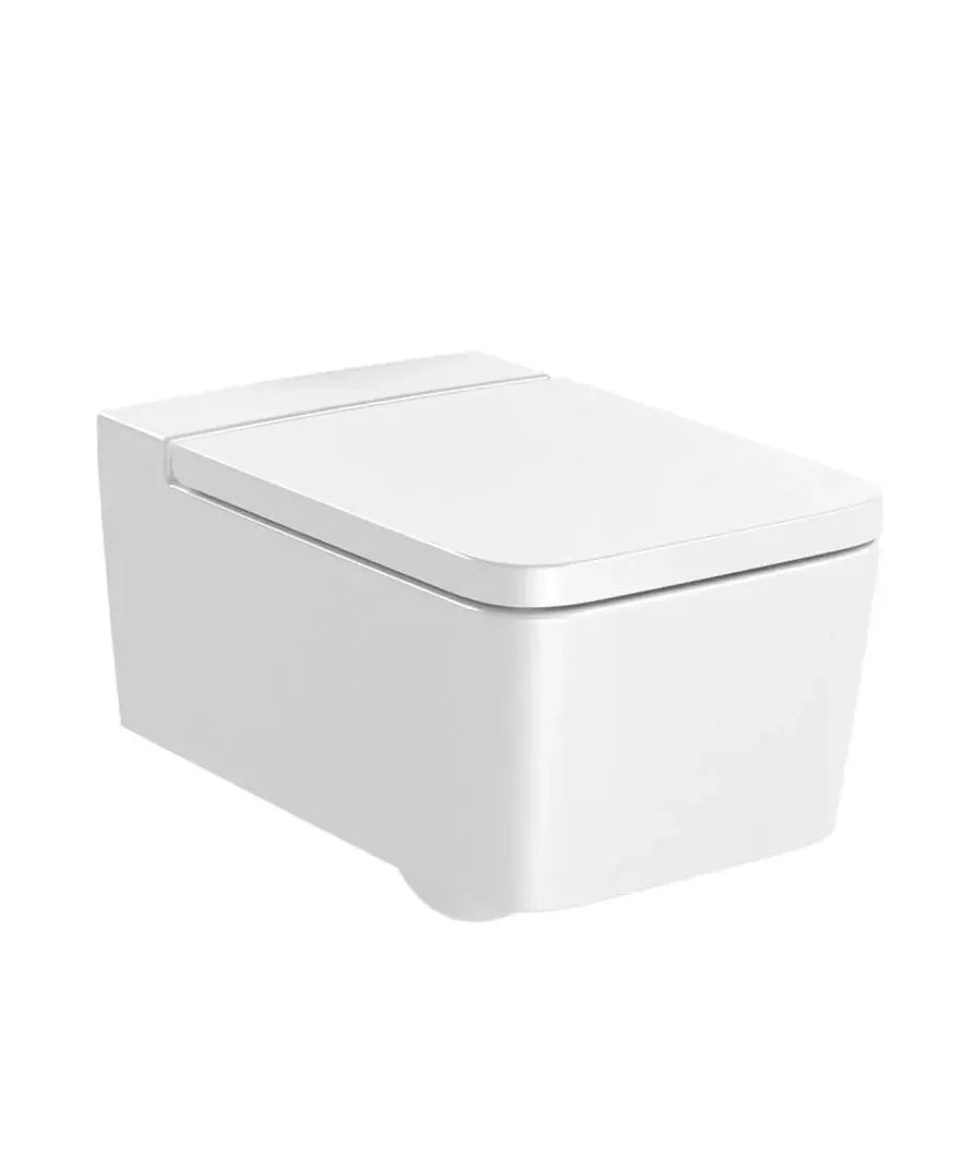 Roca Inspira Square Rimless Wall-Hung Toilet in White Porcelain