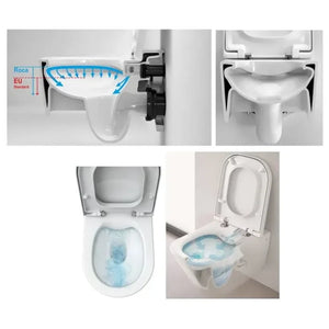 • - Rimless Technology: Rimless design, more hygienic and easy to clean, with no areas where dirt can accumulate.