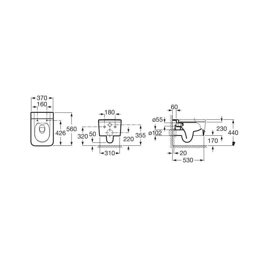 • - Dimensions: The toilet measures 56 cm wide , 44 cm high and 37 cm deep .