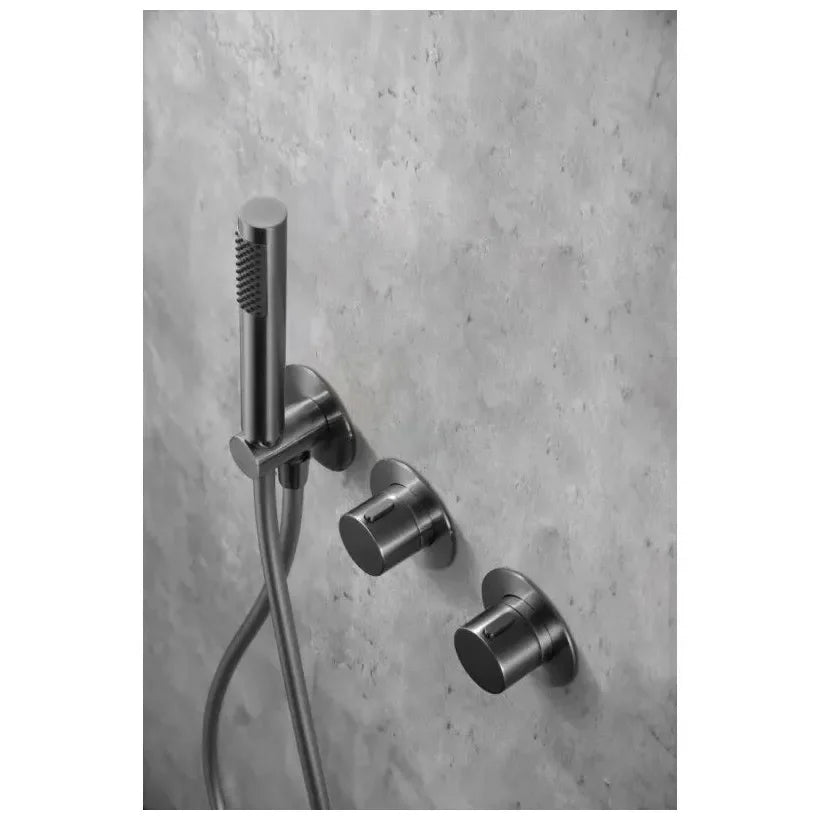 Built-in thermostatic shower set with wall or ceiling mounted shower head in metallic black Assen finish by Imex