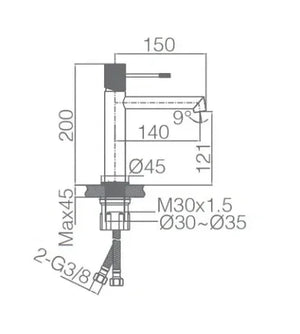 - - Dimensões: A torneira possui as dimensões de 200 mm de altura x 150 mm de comprimento, perfeita para a maioria dos lavatórios.