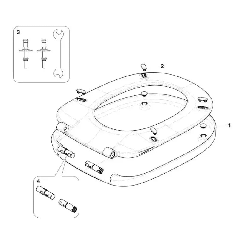 • - Tampa e Assento: Fabricados com material antibacteriano Supralit®, garantindo higiene e conforto. Tampa com dobradiças em aço inox.