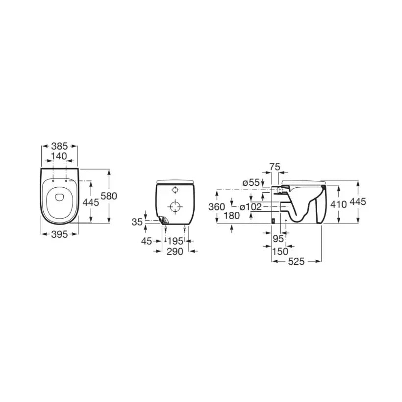 Vaso Sanitário Adosado à Parede Rimless 58 cm de Profundidade Saída Dual Tampa Amortecida Caixa Acoplada e Placa de Acionamento BEYOND ROCA