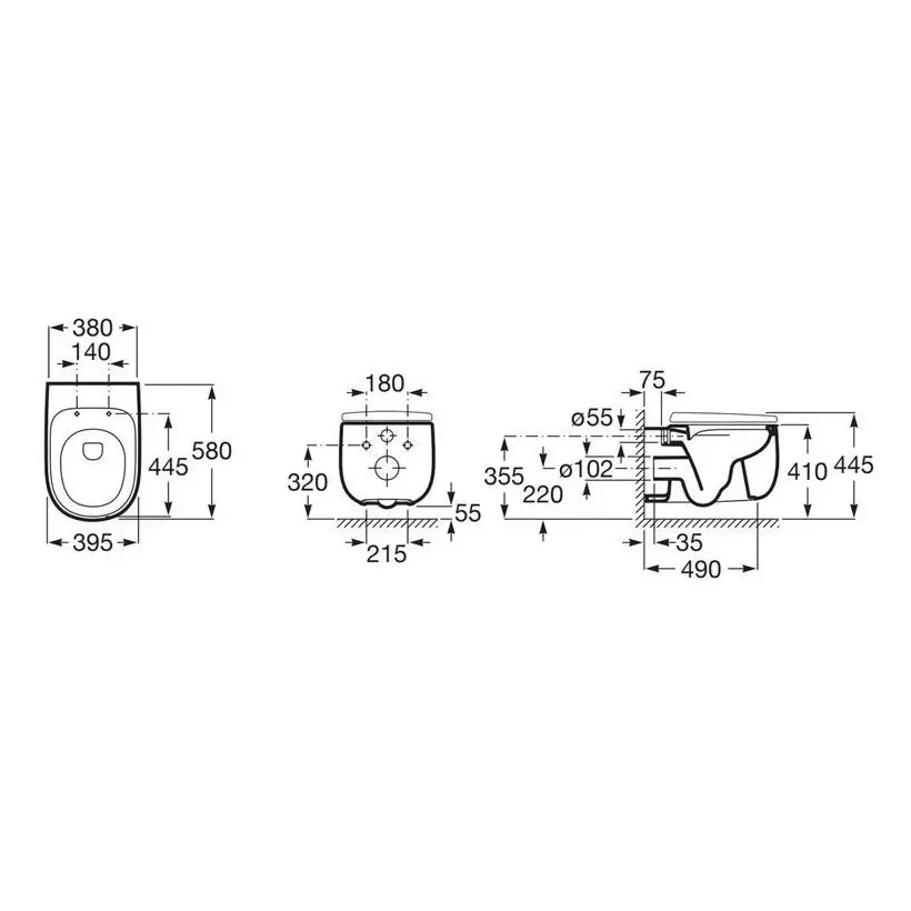 Roca 39.5 cm Suspended Toilet with Rimless Technology in Pearl Color