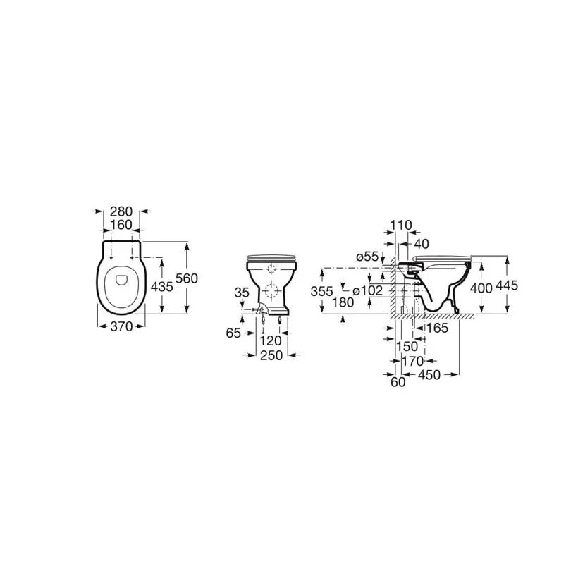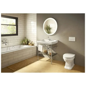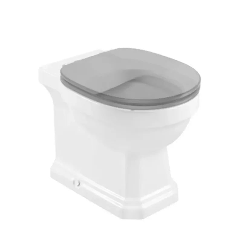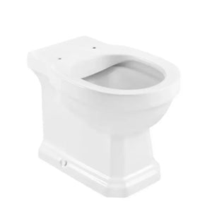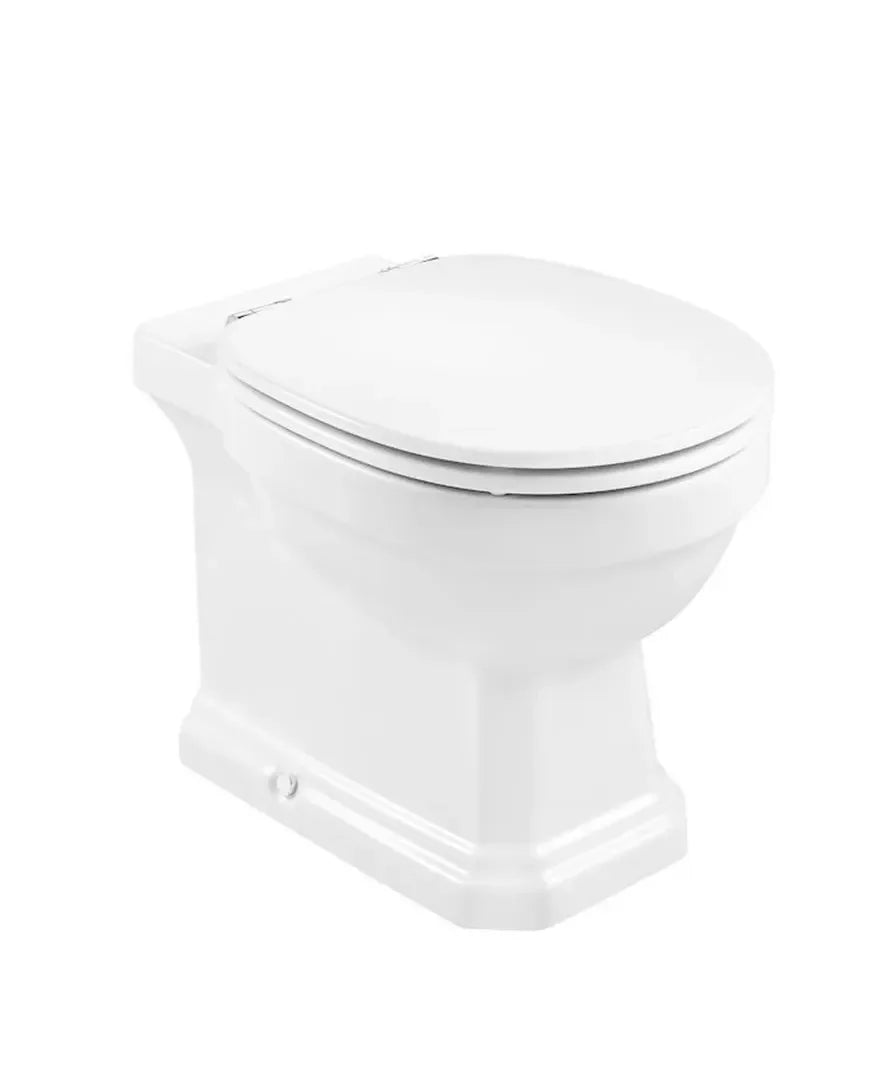 • - Categoria: Vasos sanitários (WC, bacias, sanitários): de chão, com saída horizontal (evacuação para a parede), de caixa alta ou embutida (oculta), de porcelana (louça, cerâmica), com tecnologia Rimless (autolimpeza), com tampa com fechamento suave, estilo vintage (retrô), de cor branca.