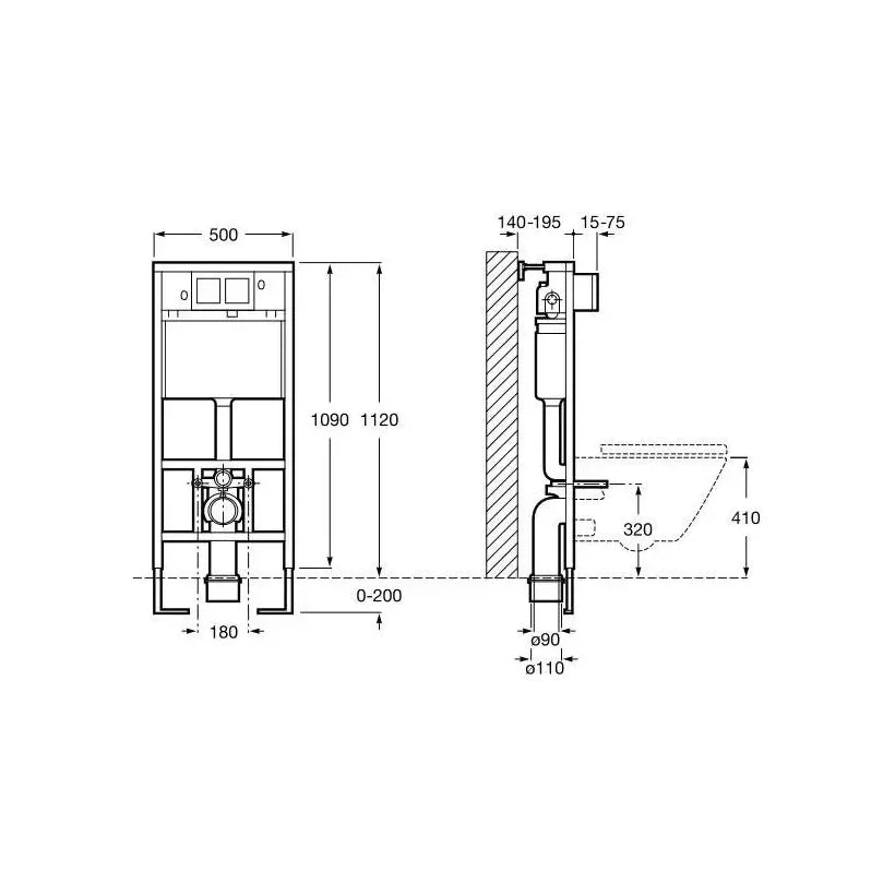 • - Dimensions: Toilet 35.5 cm long , 54 cm wide and 40 cm high ; frame with cistern 47.5 cm long , 10.7 cm wide and 112 cm high .