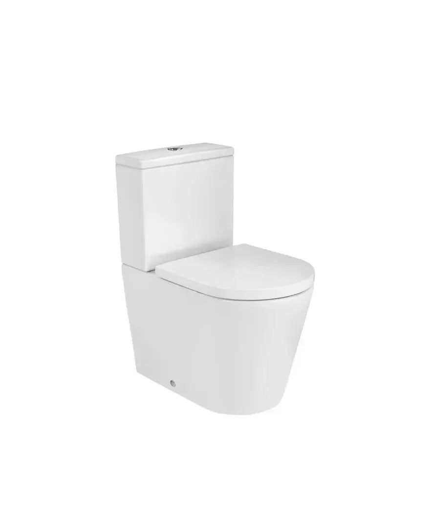 • - Model : Roca Rimless Inspira Round complete toilet, designed to provide elegance and functionality in your bathroom.