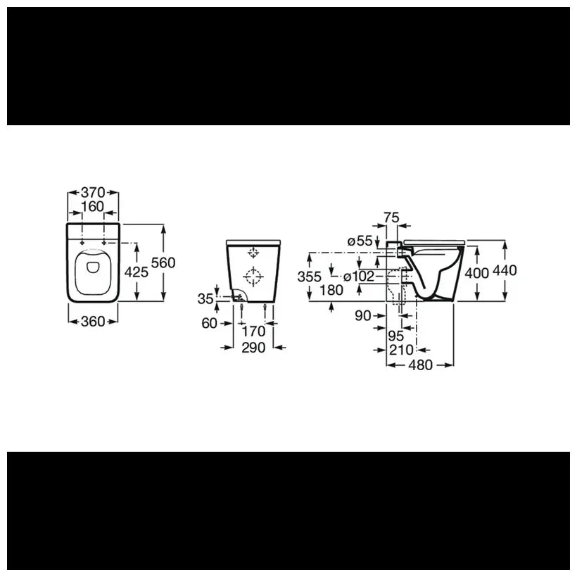Roca Inspira Square Inodoro Rimless com saída dupla para tanque alto ou embutido ou fluxor