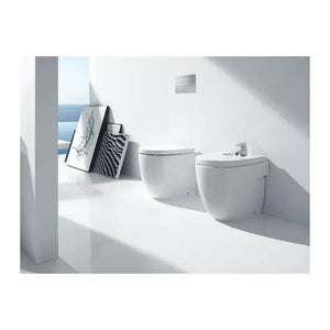 - - Design: Dual toilet with lid and seat, round, compact and wall-mounted, ideal for high or built-in cisterns.