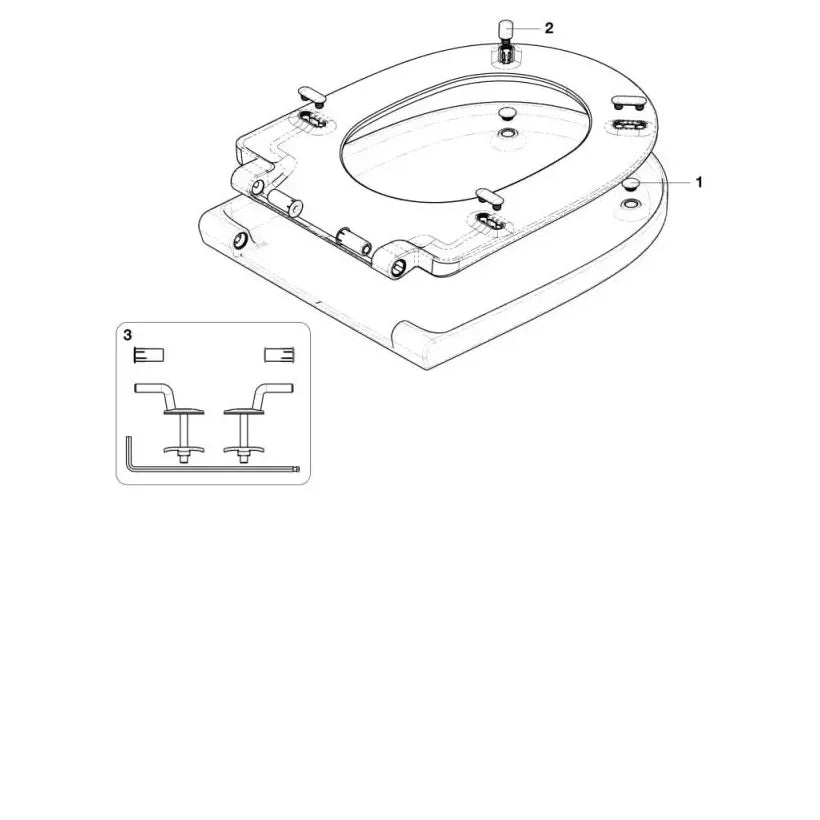 - - Hinges: The seat hinges have changed compared to the image, and are detailed in the exploded diagram of the product.