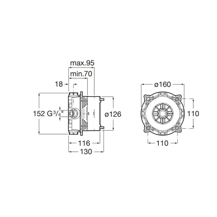 16CM DIAMETER BUILT-IN BATH-SHOWER MIXER IN MATTE BLACK