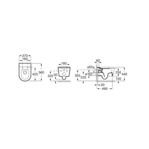 • - Toilet dimensions: 37 cm wide, 44 cm high and 56 cm deep.