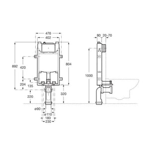 Pack Suspended Rimless Toilet Horizontal Outlet Cushioned Lid Cistern and ROUND ROCA Push Plate
