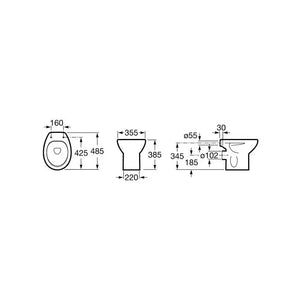 - - Lid and seat: Made of Supralit® antibacterial material for greater hygiene and durability. Measurements: 36 cm wide , 44.7 cm deep , 4.8 cm high .