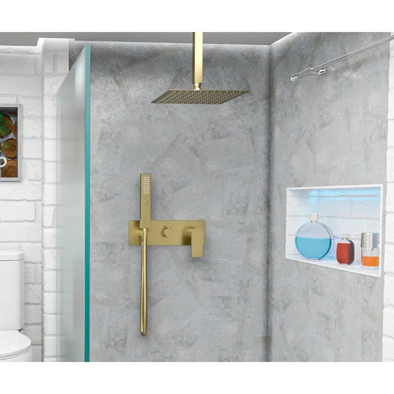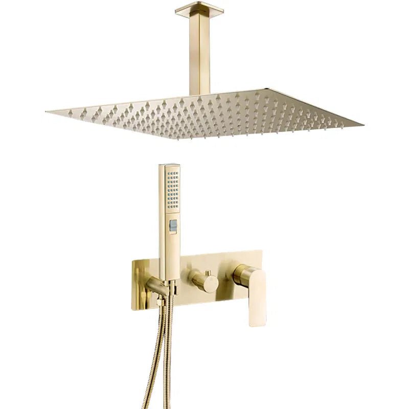 Enhance your bathing experience with the Single Lever Overhead Shower Set in a brushed gold finish from the Miño series. This elegant set is designed for recessed installation, giving you a minimalist and modern look. This elegant set is designed for recessed installation, giving you a minimalist and modern look. Faucet body: Made of high-quality brass.Shower Head Size Options: