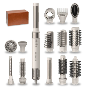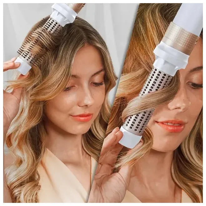 - - 14 Interchangeable Heads: Expand your styling options with a variety of heads: dryer, 33 mm, 40 mm and 70 mm brushes, 2 combs, 2 curling barrels (right and left), detangling brush, volumizing comb, concentrator, retractable-pin brush, diffuser and curling iron.
