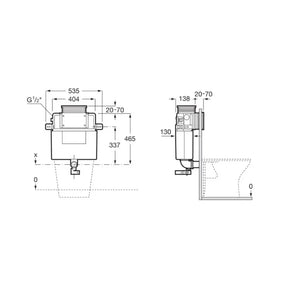 - - Dimensiones de la cisterna: 53,5 cm de ancho x 46,5 cm de alto x 14 cm de fondo, ideal para instalación bajo ventana.
