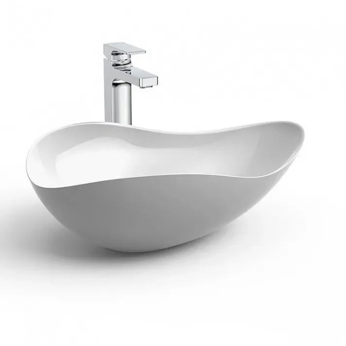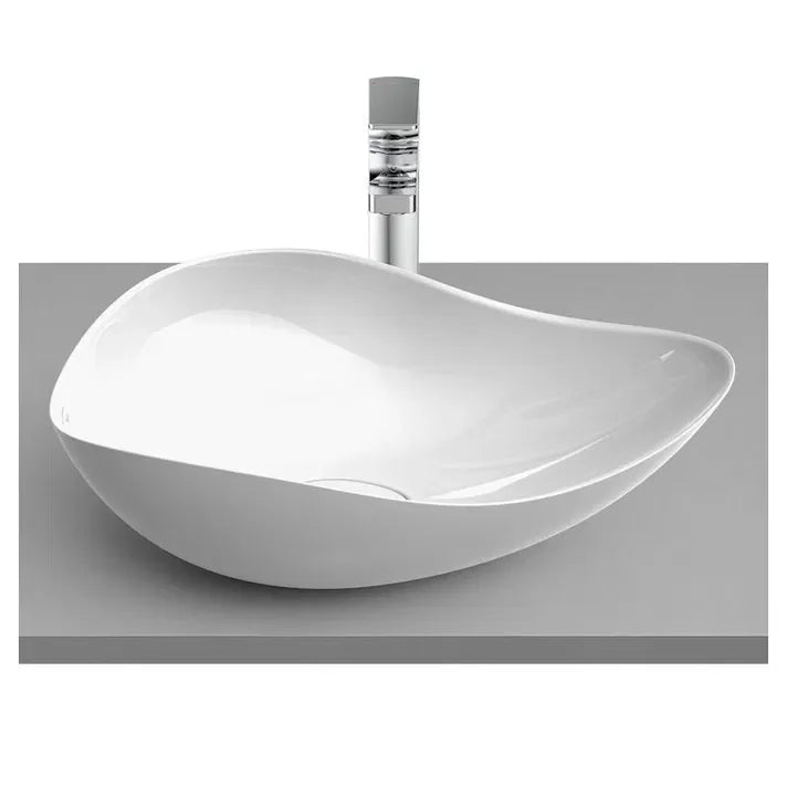 This product is in the category Bathroom Sinks and Vanities (bathroom sinks and basins): countertop , elliptical (oval) , porcelain (ceramic) , modern , 50 cm to 59 cm wide , regular , white .