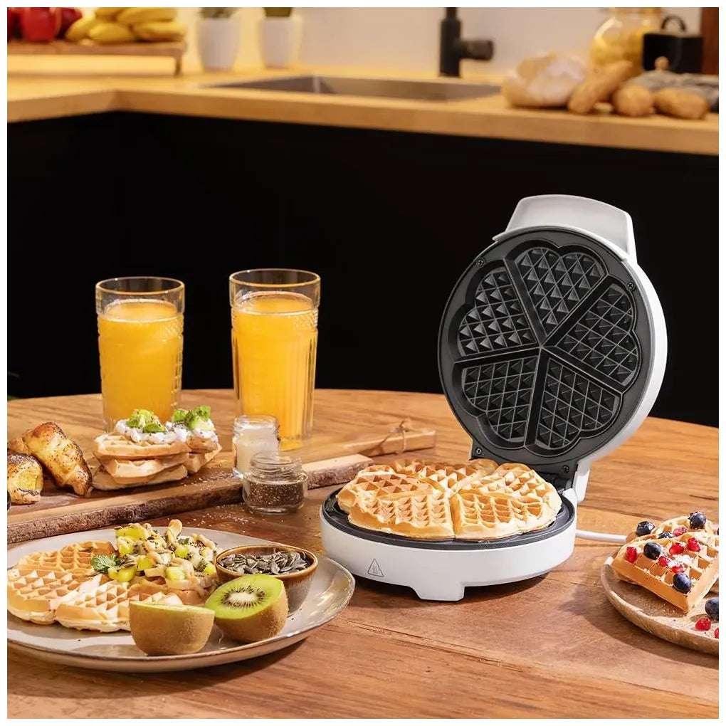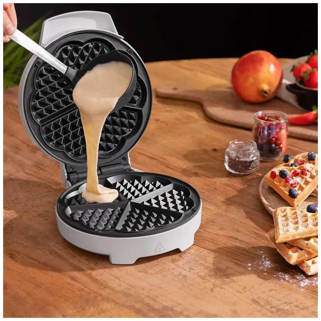 - Capacité : Permet de cuire une grande gaufre ou cinq gaufres en forme de cœur.