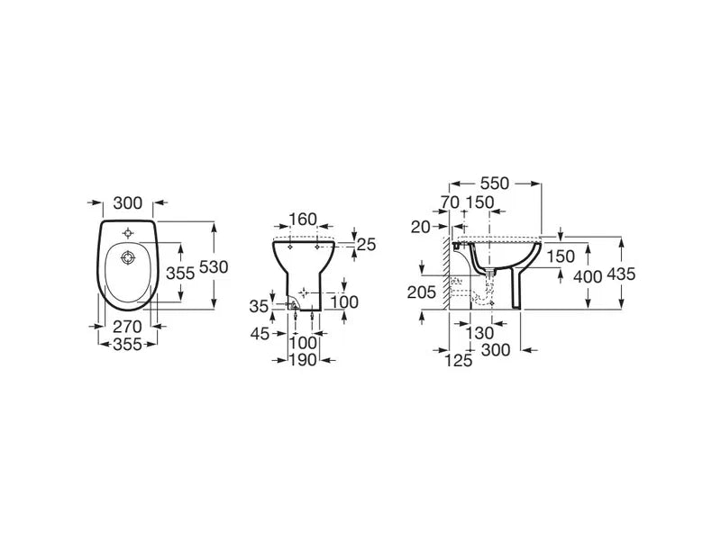 Bidé de porcelana blanca completo con juego de fijación incluido Victoria de Roca