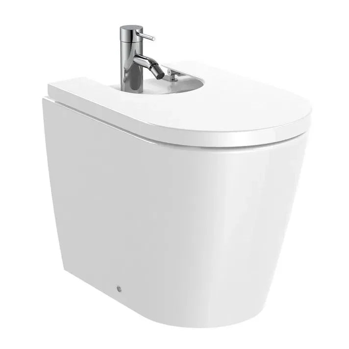 Bidet con un agujero para grifería de 37 cm fabricado en porcelana de color blanco Inspira Round Roca