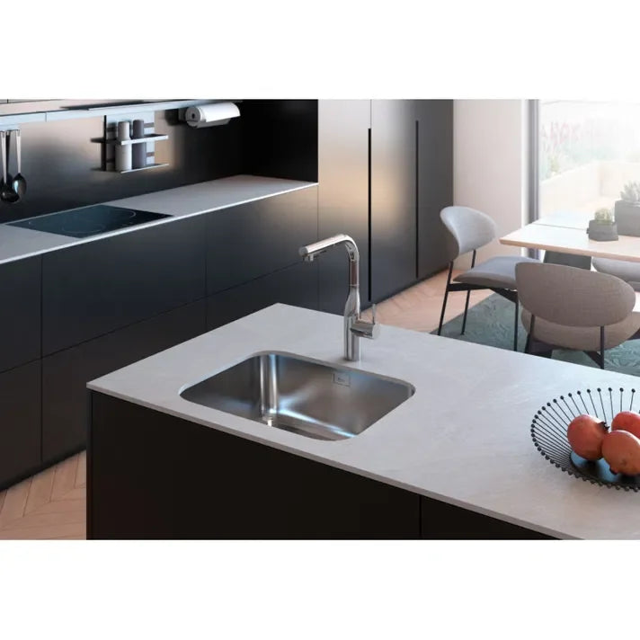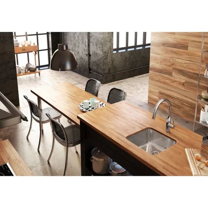 - Tipo: Fregadero de una cubeta, diseñado para instalación encastrada bajo encimera.