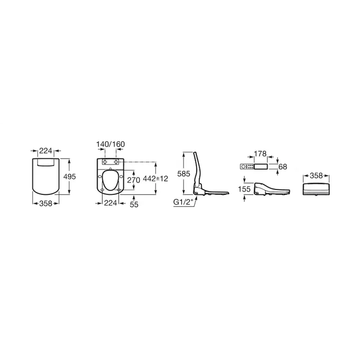 Asiento y tapa de 35,8 cm con control de mando a distancia Multiclean Premium Square de Roca