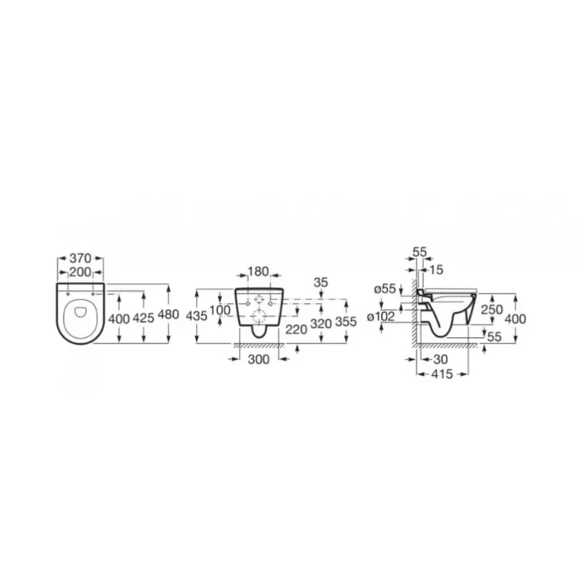 Pack de Inodoro Suspendido Rimless 48 cm de Fondo Salida Horizontal con Tapa Placa Pulsadora y Cisterna ROUND ROCA