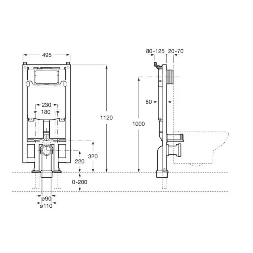 - - Modelo: Inodoro suspendido completo con cisterna empotrada y placa pulsadora, modelo ROUND de Roca.