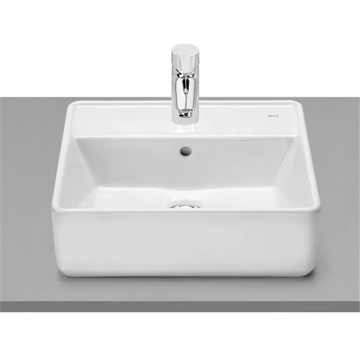 Lavabo sobre encimera de porcelana de 42 cm con un acabado en color blanco Square ROCA