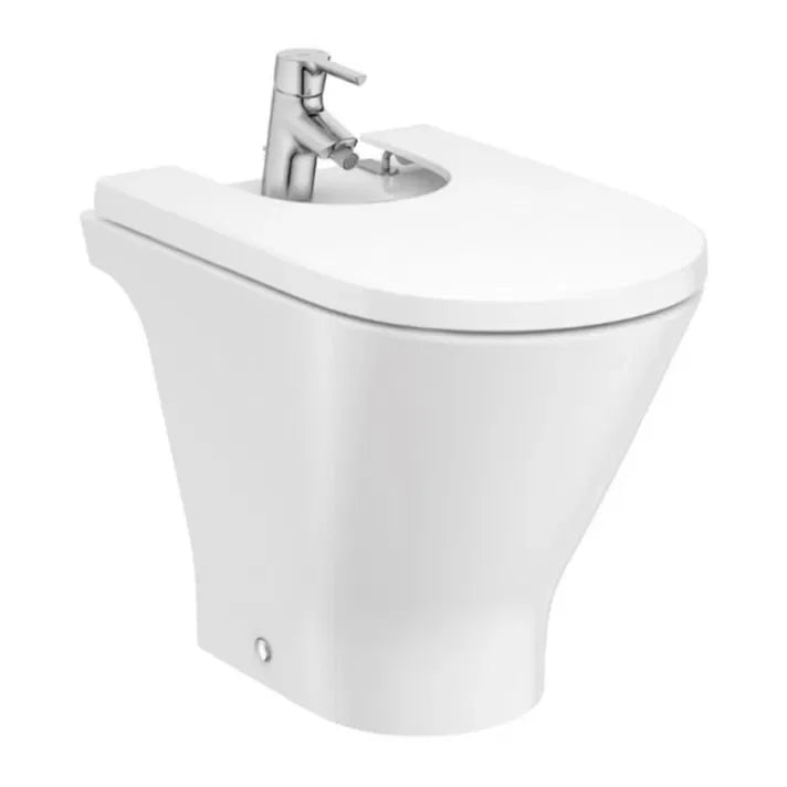 Bidé de suelo hecho en porcelana con un acabado en color blanco The Gap Round Roca