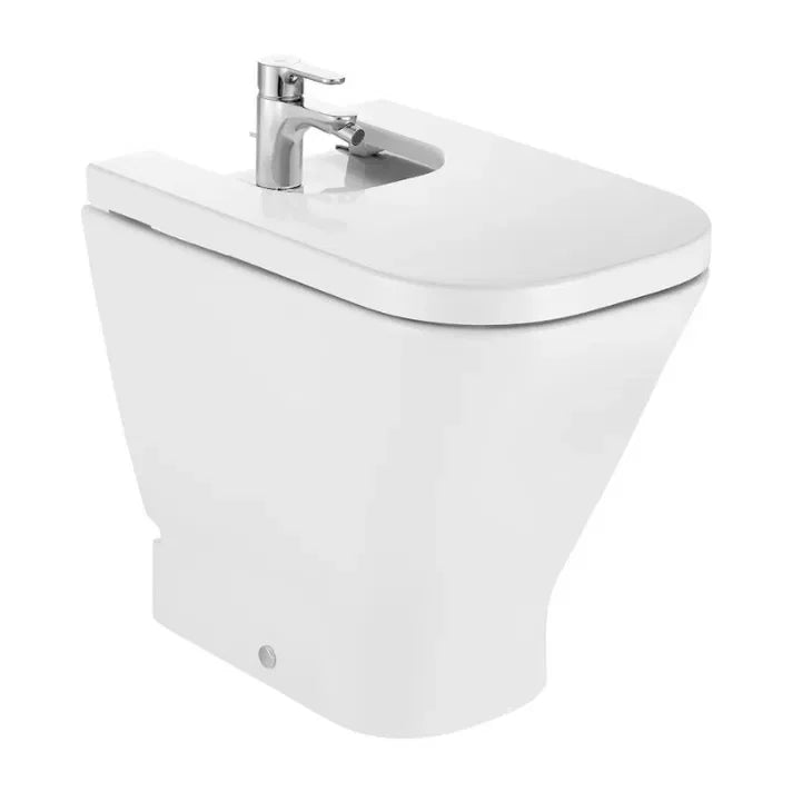 Bidé comfort adosado a pared de porcelana con un acabado en color blanco The Gap Square Roca