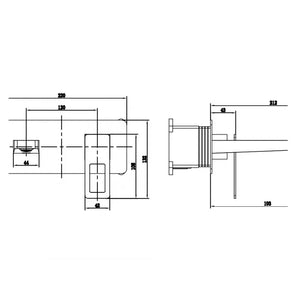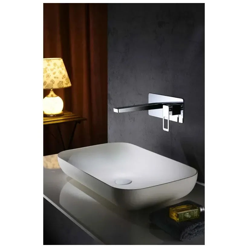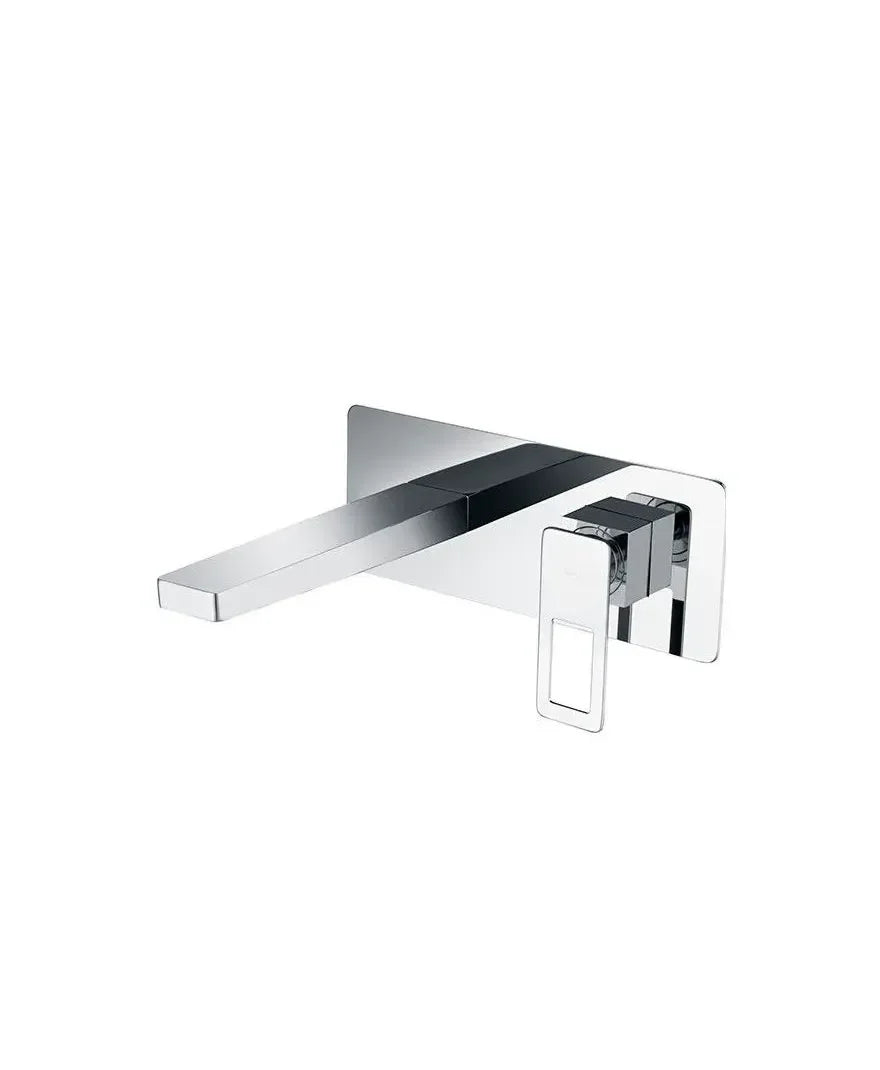 Torneira monocomando para lavatório com montagem na parede, em latão com acabamento cromado.